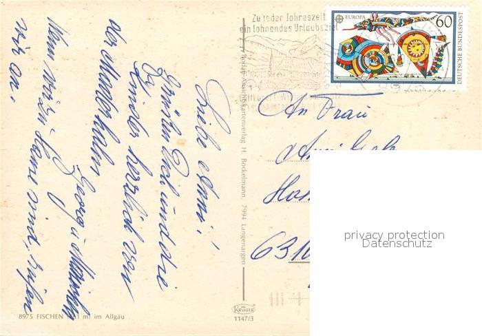 73227071 alte Postkarte Fischen Allgaeu Panorama Blick zum Gruenten Spieser Allgaeuer Alpen postalisch gelaufen Erhaltung siehe scans [FriedD77] KatCode: 11110009780121