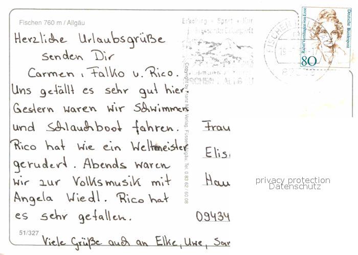 72654362 alte Postkarte Fischen Allgaeu Panorama Kirche Teilansichten Viehweide postalisch gelaufen Erhaltung siehe scans [WerneD78] KatCode: 11110009780121