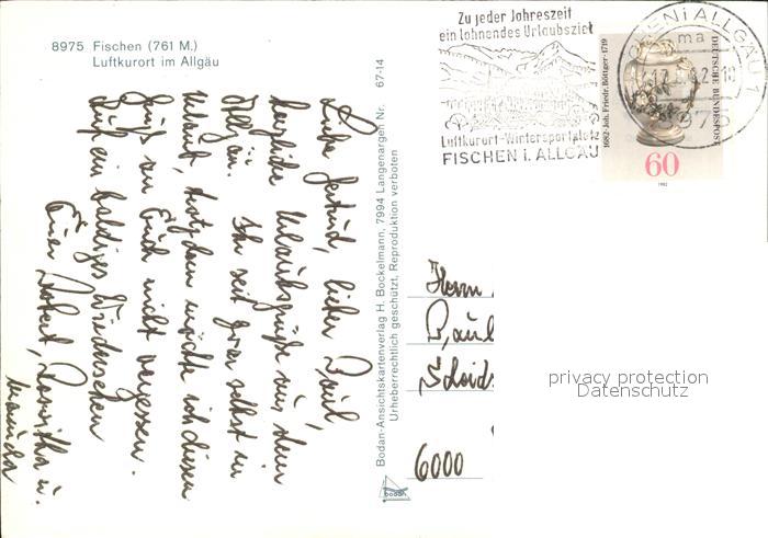72571780 alte Postkarte Fischen Allgaeu Panorama Schwimmbad Kirche postalisch gelaufen Erhaltung siehe scans [AndreD76] KatCode: 11110009780121