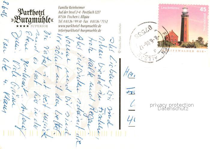 73542415 alte Postkarte Fischen Allgaeu Parkhotel Burgmuehle postalisch gelaufen Erhaltung siehe scans [KathaD81] KatCode: 11110009780121