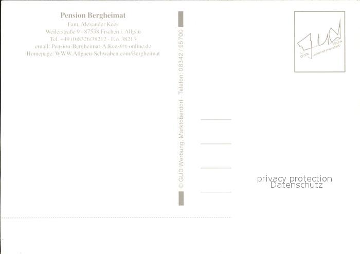 72465710 Fischen Allgaeu Pension Bergheimat postalisch nicht gelaufen Erhaltung siehe scans KatCode: 11110009780121