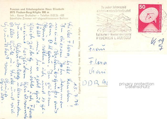 73828629 alte Postkarte Fischen Allgaeu Pension Erholungsheim Haus Elisabeth Panorama postalisch gelaufen Erhaltung siehe scans [WerneD78] KatCode: 11110009780121