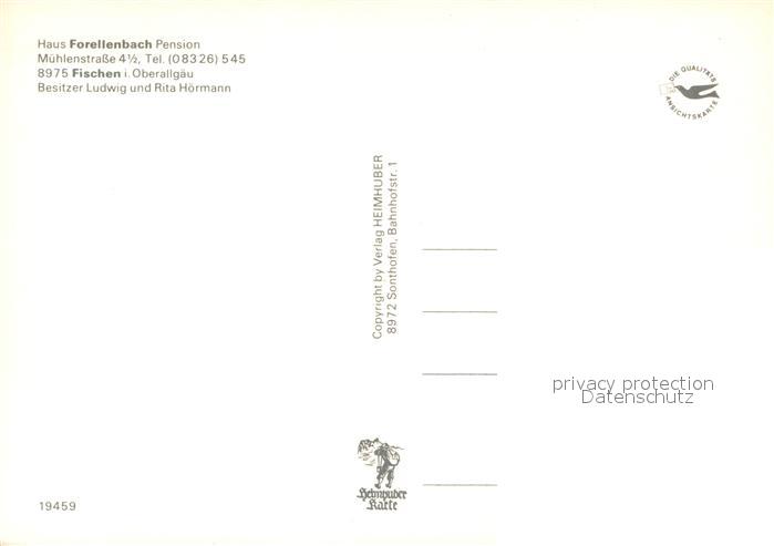 73658634 Fischen Allgaeu Pension Forellenbach Gastraum Fremdenzimmer Garten postalisch nicht gelaufen Erhaltung siehe scans [FriedD77] KatCode: 11110009780121