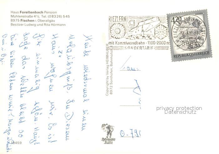 73324882 alte Postkarte Fischen Allgaeu Pension Forellenbach postalisch gelaufen Erhaltung siehe scans [LiesaD40] KatCode: 11110009780121