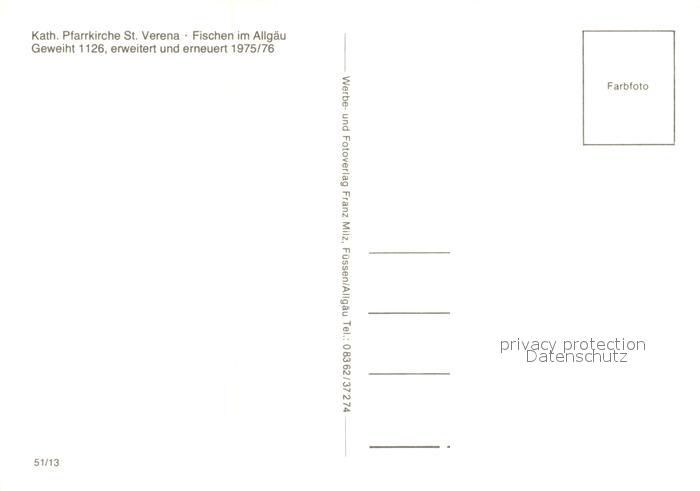 73252437 Fischen Allgaeu Pfarrkirche St Verena Inneres Orgel Taufstein postalisch nicht gelaufen Erhaltung siehe scans [WerneD78] KatCode: 11110009780121