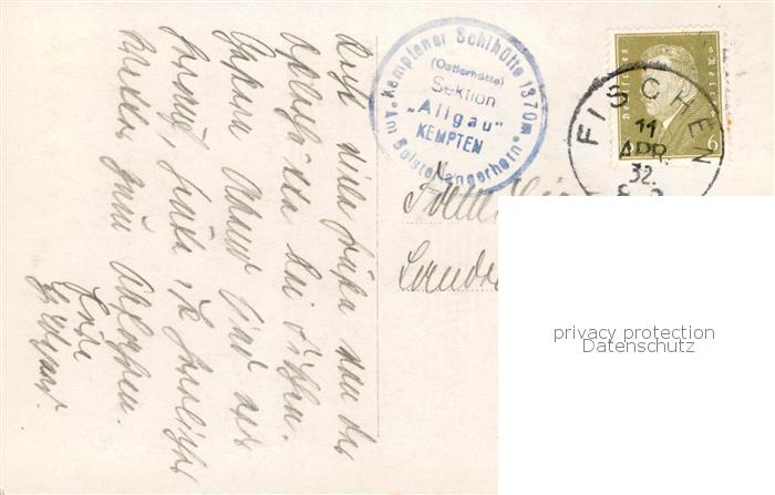 73800735 alte Postkarte Fischen Allgaeu Rangiswangerhorn Riedbergerhorn Blaicherhorn Dreifahnenkopf postalisch gelaufen Erhaltung siehe scans [WerneD78] KatCode: 11110009780121