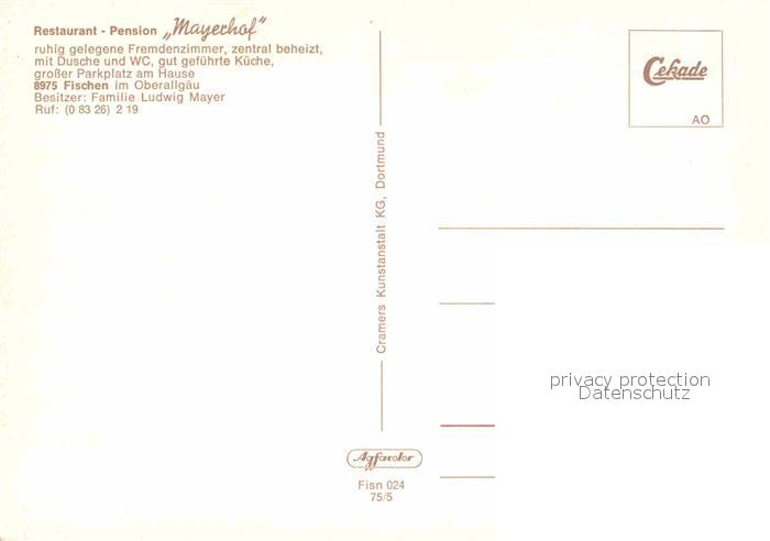 72790652 Fischen Allgaeu Restaurant Pension Mayerhof postalisch nicht gelaufen Erhaltung siehe scans [LiesaD40] KatCode: 11110009780121