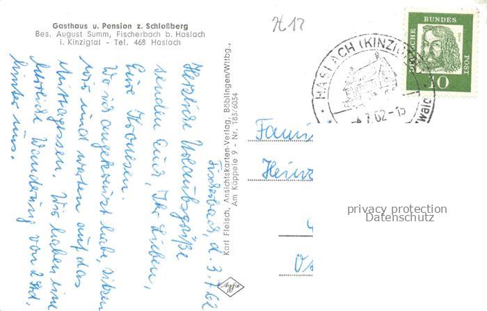 74100399 alte Postkarte Fischerbach Haslach Kinzigtal BW Panorama Gasthaus zum Schlossberg postalisch gelaufen Erhaltung siehe scans [WerneD78] KatCode: 11110008317029