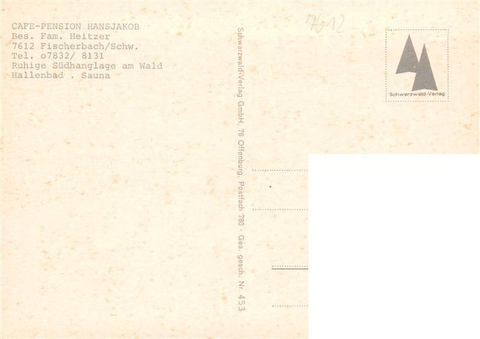 73928461 Fischerbach Kinzigtal Cafe Pension Hansjakob postalisch nicht gelaufen Erhaltung siehe scans [FriedD77] KatCode: 11110008317029