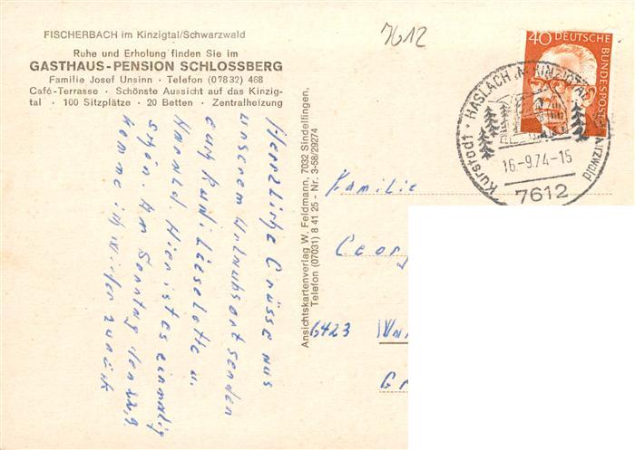 73928685 alte Postkarte Fischerbach Kinzigtal Gasthaus Pension Schlossberg postalisch gelaufen Fliegeraufnahme Erhaltung siehe scans [FriedD77] KatCode: 11110008317029
