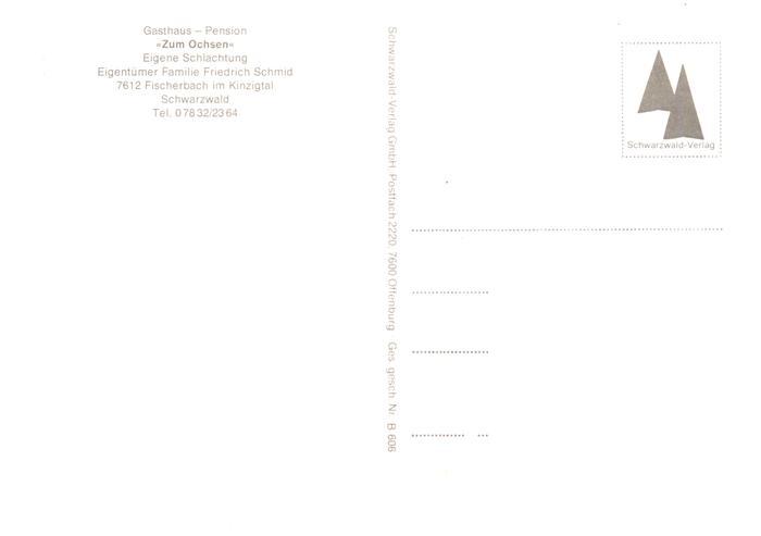 73928484 Fischerbach Kinzigtal Gasthaus Pension Zum Ochsen postalisch nicht gelaufen Erhaltung siehe scans [FriedD77] KatCode: 11110008317029