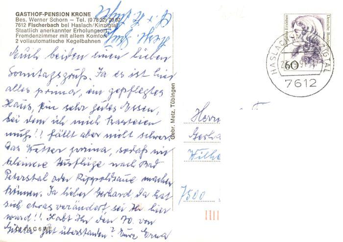 73928458 alte Postkarte Fischerbach Kinzigtal Gasthof Krone Gastraum Panorama postalisch gelaufen Erhaltung siehe scans [FriedD77] KatCode: 11110008317029