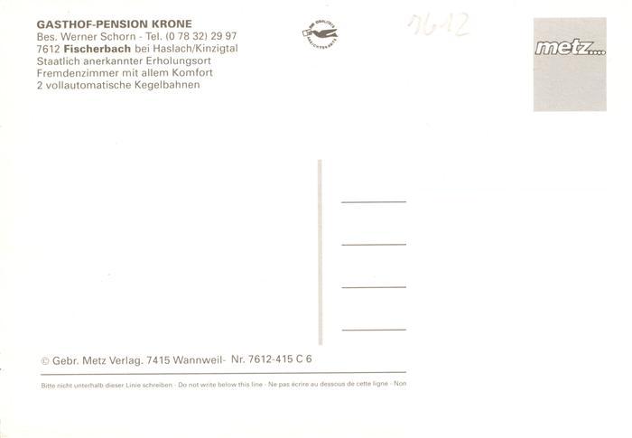 73928645 Fischerbach Kinzigtal Gasthof Pension Krone Panorama Gastraum postalisch nicht gelaufen Erhaltung siehe scans [FriedD77] KatCode: 11110008317029