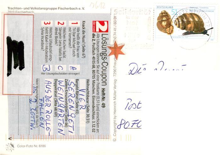 73928751 alte Postkarte Fischerbach Kinzigtal Trachten und Volkstanzgruppe Fischerbach Details postalisch gelaufen Erhaltung siehe scans [FriedD77] KatCode: 11110008317029