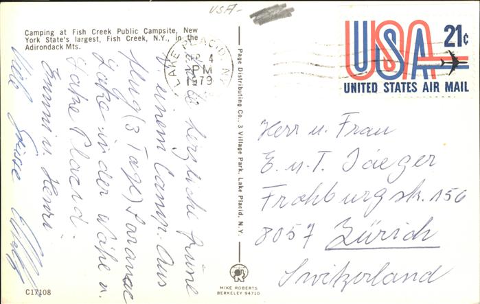 11491536 old postcard Fish Creek New York Campsite in the Adirondack Mountains postalisch gelaufen Erhaltung siehe scans KatCode: 14140520000000