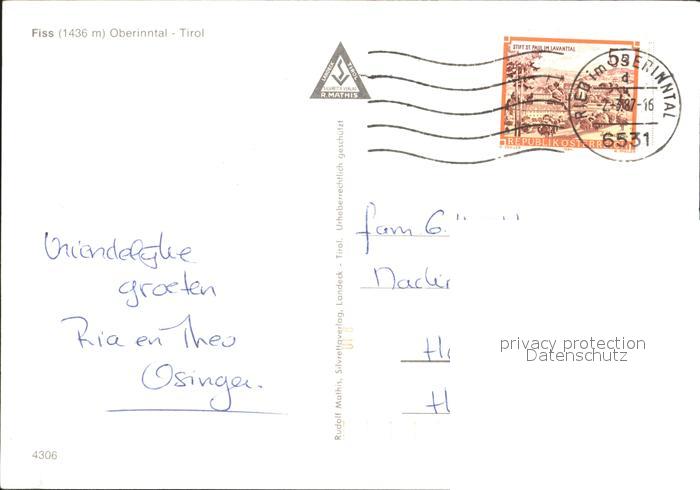 72094882 alte Postkarte Fiss Tirol Dorfpartie Kirche postalisch gelaufen Erhaltung siehe scans KatCode: 11390334070603