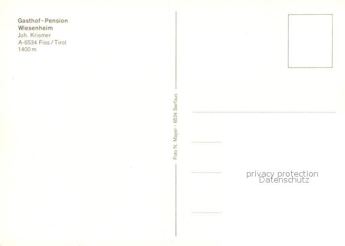 13317028 Fiss Tirol Gasthof Cafe Wiesenheim postalisch nicht gelaufen Erhaltung siehe scans [WerneD78] KatCode: 11390334070603