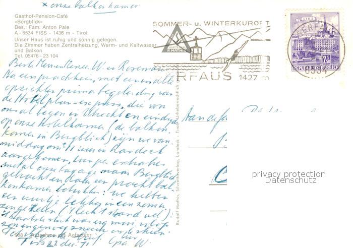 73586985 alte Postkarte Fiss Tirol Gasthof-Pension Bergblick postalisch gelaufen Erhaltung siehe scans [PaolaD17] KatCode: 11390334070603