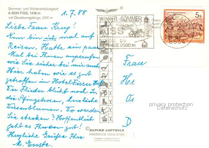73049103 alte Postkarte Fiss Tirol Glockenturmgebirge postalisch gelaufen Erhaltung siehe scans [KathaD81] KatCode: 11390334070603