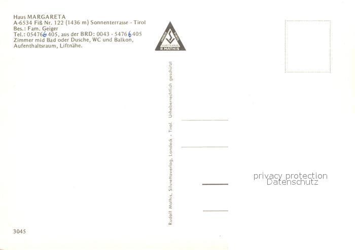 12990929 Fiss Tirol Haus Margareta postalisch nicht gelaufen Erhaltung siehe scans [NatalD47] KatCode: 11390334070603