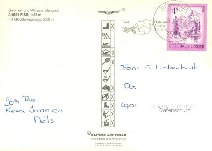 73219760 alte Postkarte Fiss Tirol mit Glockturmgebirge Fliegeraufnahme Alpenflora postalisch gelaufen Erhaltung siehe scans [FriedD77] KatCode: 11390334070603