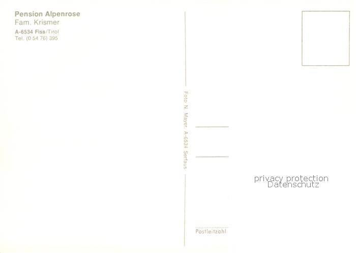13011048 Fiss Tirol Pension Alpenrose postalisch nicht gelaufen Erhaltung siehe scans [NatalD47] KatCode: 11390334070603