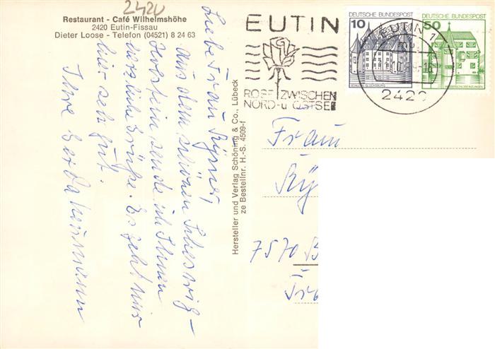 73940316 alte Postkarte Fissau Eutin Restaurant Cafe Wilhelmshoehe Gastraeume postalisch gelaufen Erhaltung siehe scans [FriedD77] KatCode: 11110001055012
