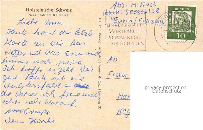 74113662 alte Postkarte Fissau Kellersee Eutin Schleswig-Holstein Seeschloss am Kellersee postalisch gelaufen Erhaltung siehe scans [FriedD77] KatCode: 11110001055012