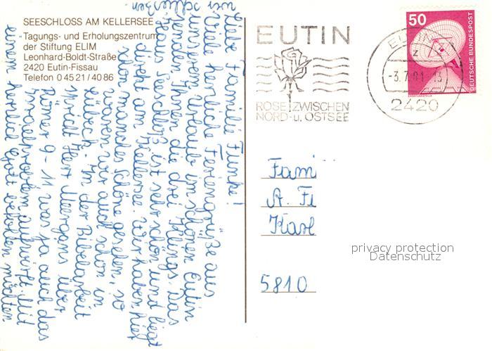 73323217 alte Postkarte Fissau Seeschloss am Kellersee Tagungs- und Erholungszentrum der Stiftung ELIM postalisch gelaufen Erhaltung siehe scans [FriedD77] KatCode: 11110001055012