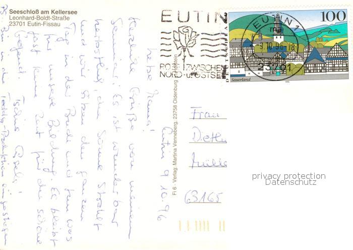 73268607 alte Postkarte Fissau Seeschloss am Kellersee postalisch gelaufen Erhaltung siehe scans [PaolaD17] KatCode: 11110001055012