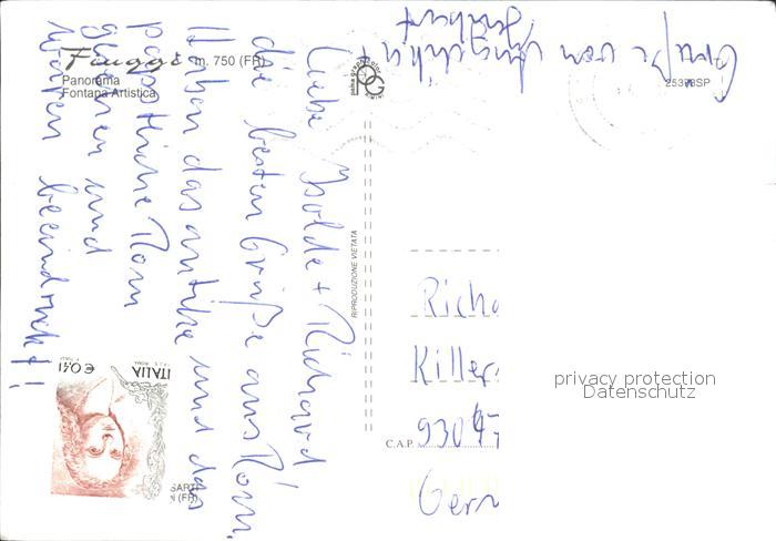 old postcard Fiuggi Fonte Panorama Fontana Artistica postalisch gelaufen Erhaltung siehe scans