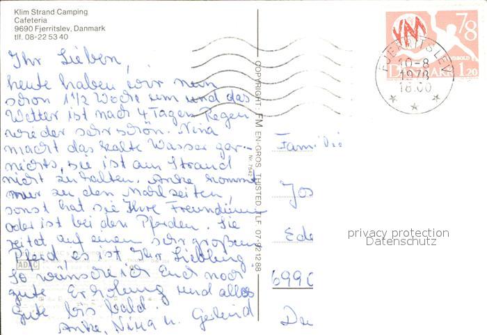old postcard Fjerritslev Fliegeraufnahme Klim Strand Camping postalisch gelaufen Erhaltung siehe scans
