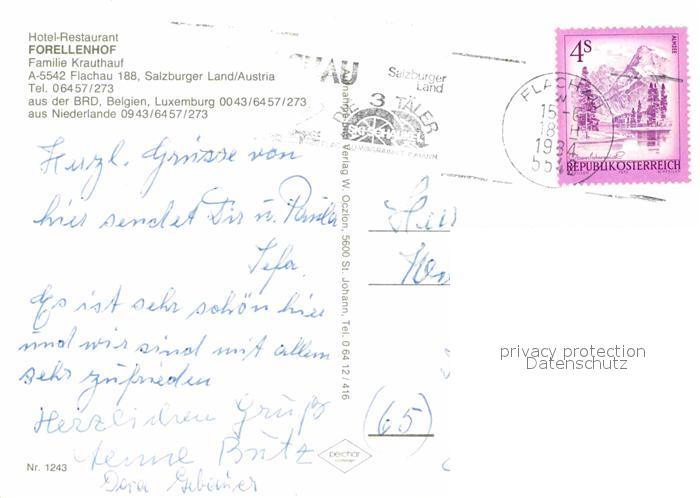 72841713 alte Postkarte Flachau Forellenhof Hotel Restaurant Schwimmbad postalisch gelaufen Erhaltung siehe scans [LiesaD40] KatCode: 11390322050408