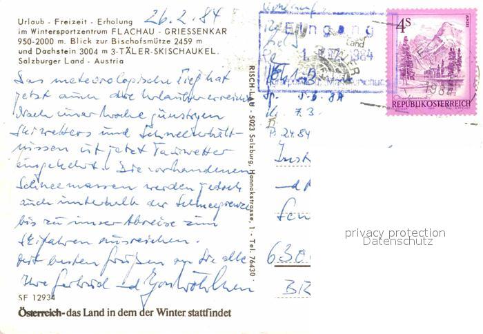 72772109 alte Postkarte Flachau Giessenkar Skigebiet postalisch gelaufen Erhaltung siehe scans [LiesaD40] KatCode: 11390322050408