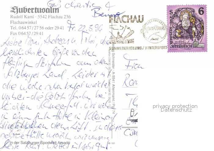 72904431 alte Postkarte Flachau Hubertusalm Rudolf Kaml Seilbahn postalisch gelaufen Erhaltung siehe scans [LiesaD40] KatCode: 11390322050408