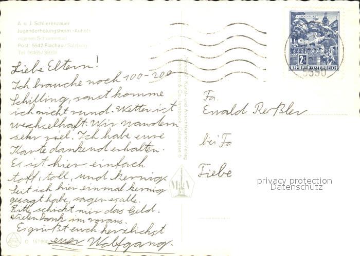 72443118 alte Postkarte Flachau Jugenderholungsheim Auhof postalisch gelaufen Erhaltung siehe scans KatCode: 11390322050408
