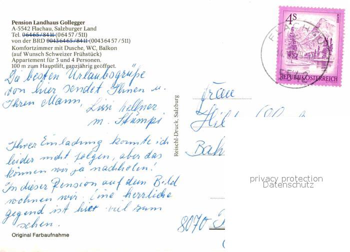 72696877 alte Postkarte Flachau Pension Landhaus Gollegger postalisch gelaufen Erhaltung siehe scans [KathaD79] KatCode: 11390322050408