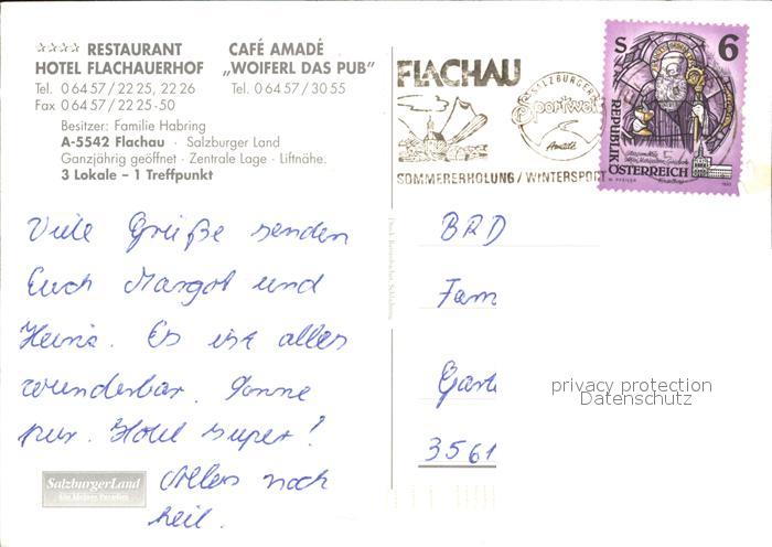 72500910 alte Postkarte Flachau Restaurant Hotel Flachauerhof Winterpanorama postalisch gelaufen Erhaltung siehe scans KatCode: 11390322050408