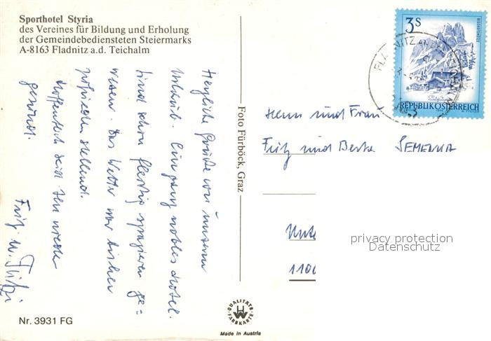 12935051 alte Postkarte Fladnitz Teichalm Sporthotel Styria postalisch gelaufen Erhaltung siehe scans [AndreD76] KatCode: 11390224061709