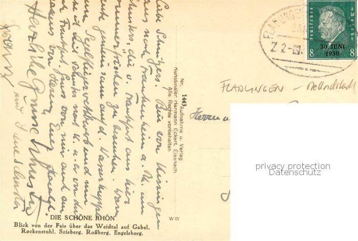 73777077 alte Postkarte Fladungen Panorama Blick von der Fais ins Weidtal Serie Die schoene Rhoen postalisch gelaufen Bahnpost Erhaltung siehe scans [FriedD77] KatCode: 11110009673123