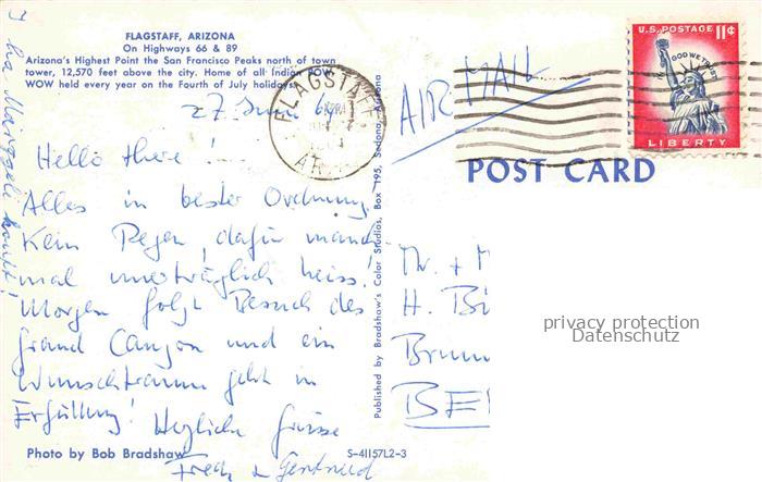 74095703 old postcard Flagstaff Arizona USA Highways 66 & 89 Greetins postalisch gelaufen Erhaltung siehe scans [IrynaD87] KatCode: 14140030000000