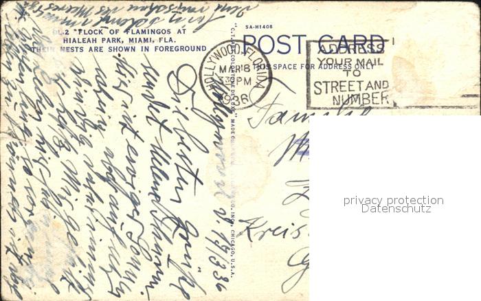 alte Postkarte Flamingo Hialeah Park Miami postalisch gelaufen Erhaltung siehe scans