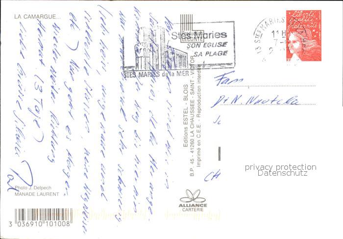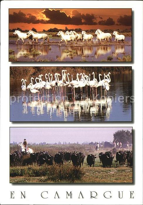 alte Postkarte Flamingo Pferde Bueffel Camargue postalisch gelaufen Erhaltung siehe scans [PaolaD17]
