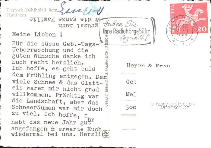 alte Postkarte Flamingo Tierpark Daehlhoelzli Bern postalisch gelaufen Erhaltung siehe scans