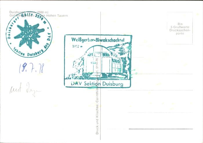 71431692 Flattach Duisburger Huette Goldberggruppe Hohe Tauern postalisch nicht gelaufen Erhaltung siehe scans KatCode: 11390212020607