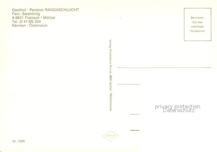 73630033 Flattach Gasthof Raggaschlucht Garten Gaststube Wasserfall postalisch nicht gelaufen Erhaltung siehe scans [WerneD78] KatCode: 11390212020607