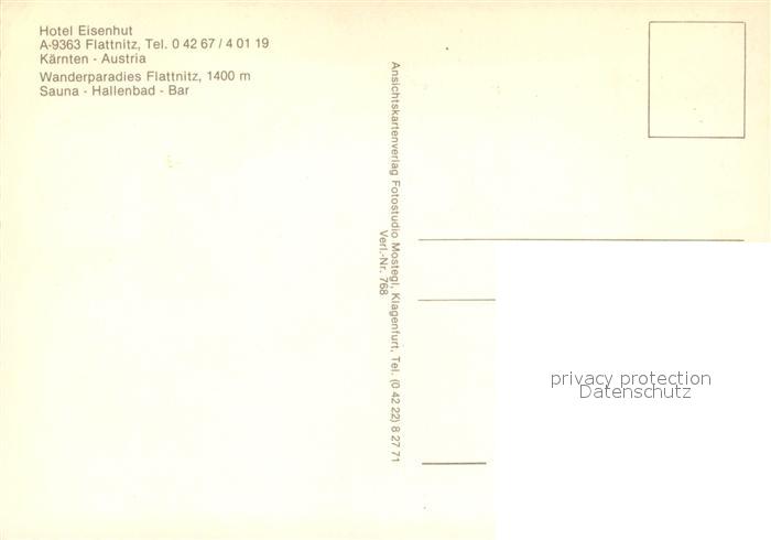 73161209 Flattnitz Hotel Eisenhut Wanderparadies postalisch nicht gelaufen Erhaltung siehe scans [FriedD77] KatCode: 11390213020506