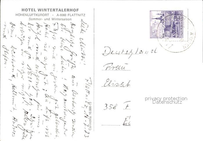 72433435 alte Postkarte Flattnitz Hotel Wintertalerhof postalisch gelaufen Erhaltung siehe scans KatCode: 11390213020506