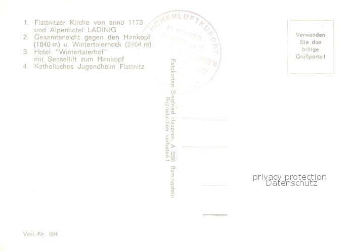 73625219 alte Postkarte Flattnitz Kirche Panorama Hotel Wintertalerhof mit Sessellift Kath Jugendheim Flattnitz postalisch gelaufen Erhaltung siehe scans [FriedD77] KatCode: 11390213020506