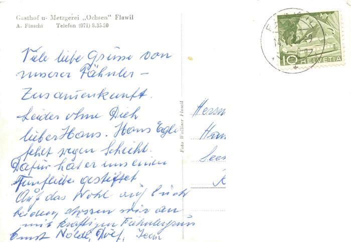 13974424 alte Postkarte Flawil SG Gasthof Metzgerei Ochsen postalisch gelaufen Erhaltung siehe scans [FriedD77] KatCode: 11470190595892